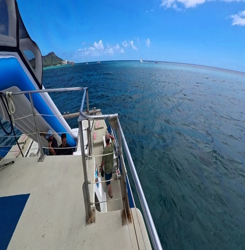 디럭스 터틀 스노클링 투어는 알라모아나 근처 케왈로만 항구에서 출발합니다.