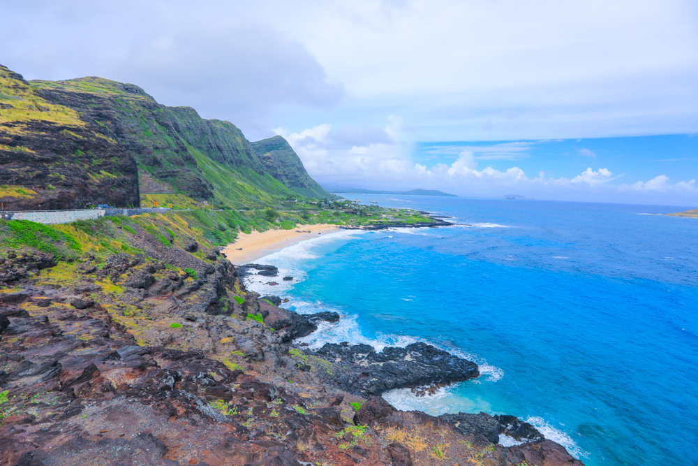 동부해안도로 진입 전 아름다운 오아후 동쪽 해안선의 전경을 감상할 수 있는 뷰 포인트입니다.
