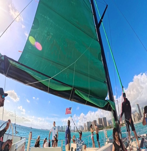 마이타이 카타마란은 하와이에서 가장 인기 있는 세일링 투어 중 하나입니다.