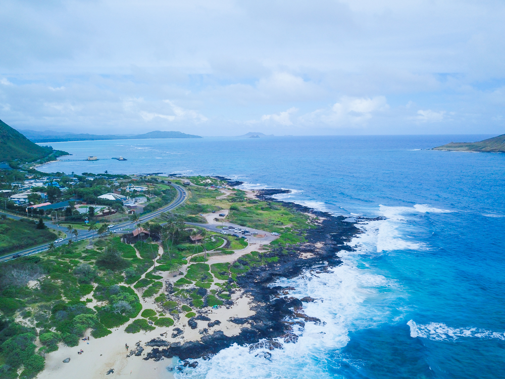 동부해안도로 진입 전 아름다운 오아후 동쪽 해안선의 전경을 감상할 수 있는 뷰 포인트입니다.