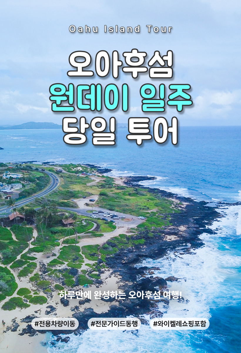 아름다운 자연 경관 감상, 유명한 새우트럭 점심, 와이켈레 아울렛 쇼핑까지! 관광, 맛집, 쇼핑 삼박자가 완성된 하와이 여행의 완벽한 하루를 선사합니다.